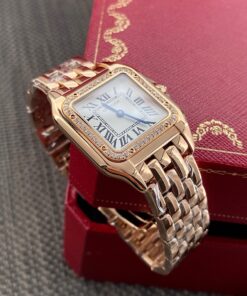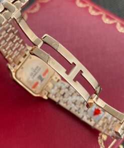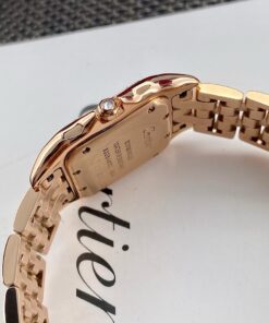Đây là dòng Panthère de Cartier – đồng hồ Báo Đốm của Cartier, không bị “đụng hàng” nhiều như Ballon Bleu nhưng lại có độ nhận diện rất cao, sang trọng mà phóng khoáng, thể hiện đúng tinh thần thẩm mỹ của Panthère de Cartier. Kiểu dáng uyển chuyển, quyến rũ, ôm sát cổ tay mềm mại như đang nhảy múa trên làn da.
