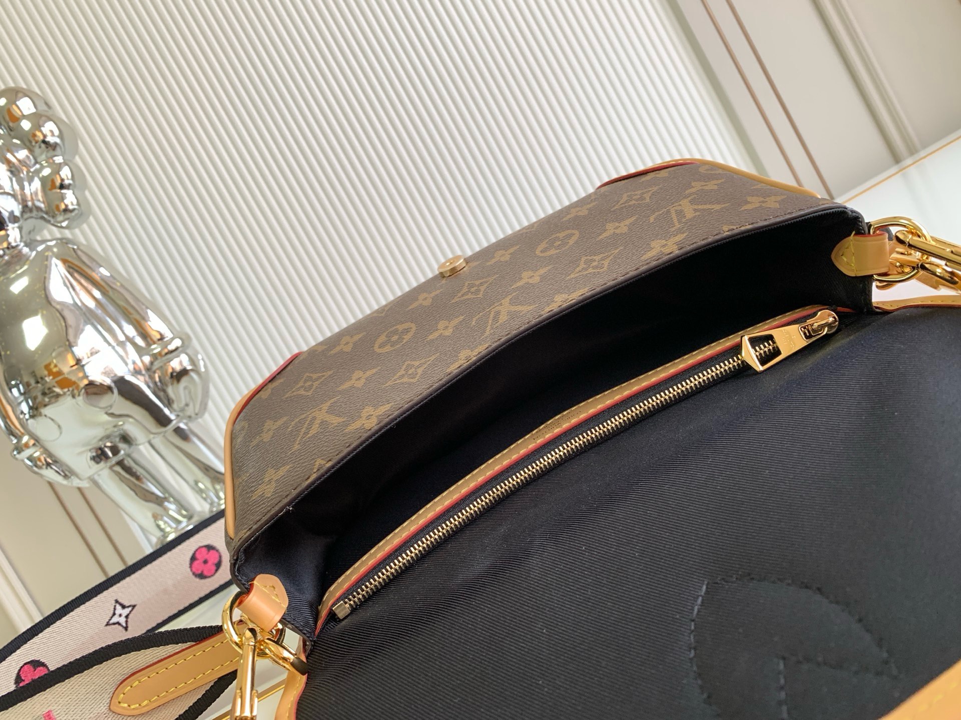 Bên trong có ngăn chia, dễ dàng sắp xếp đồ, cùng 1 ngăn kéo khóa kéo để cất giữ vật dụng giá trị.