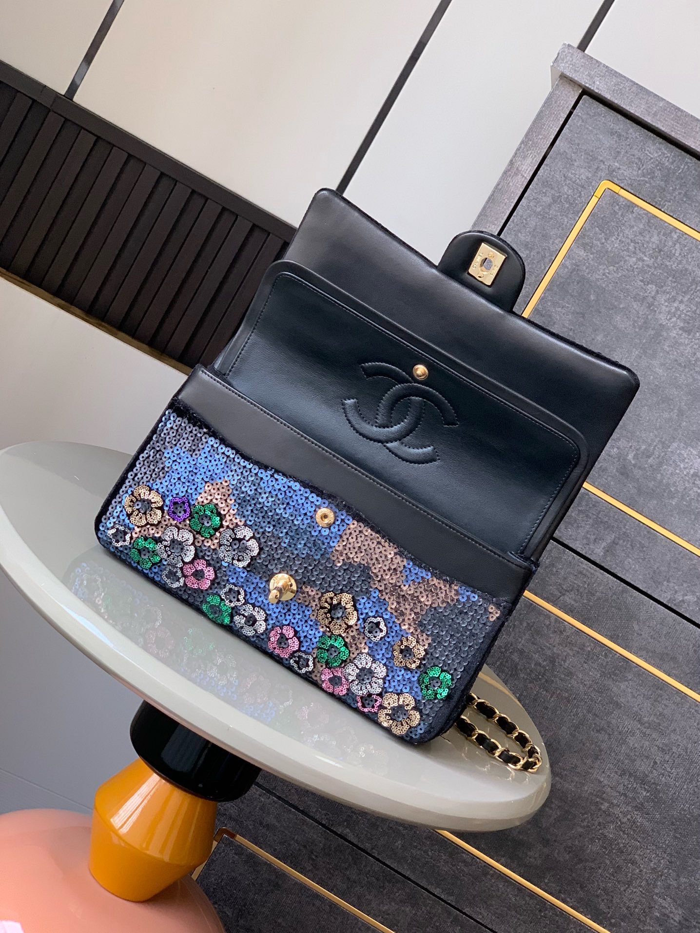 ✨ Được chế tác tại xưởng thủ công hạng sang với kỹ thuật thêu tỉ mỉ , đính sequin lấp lánh dạng CF cực bắt sáng – siêu hiếm, siêu hot mùa thu đông này! Phiên bản SO BLACK cá tính, cool ngầu, ra phố bảo đảm nổi bật .
