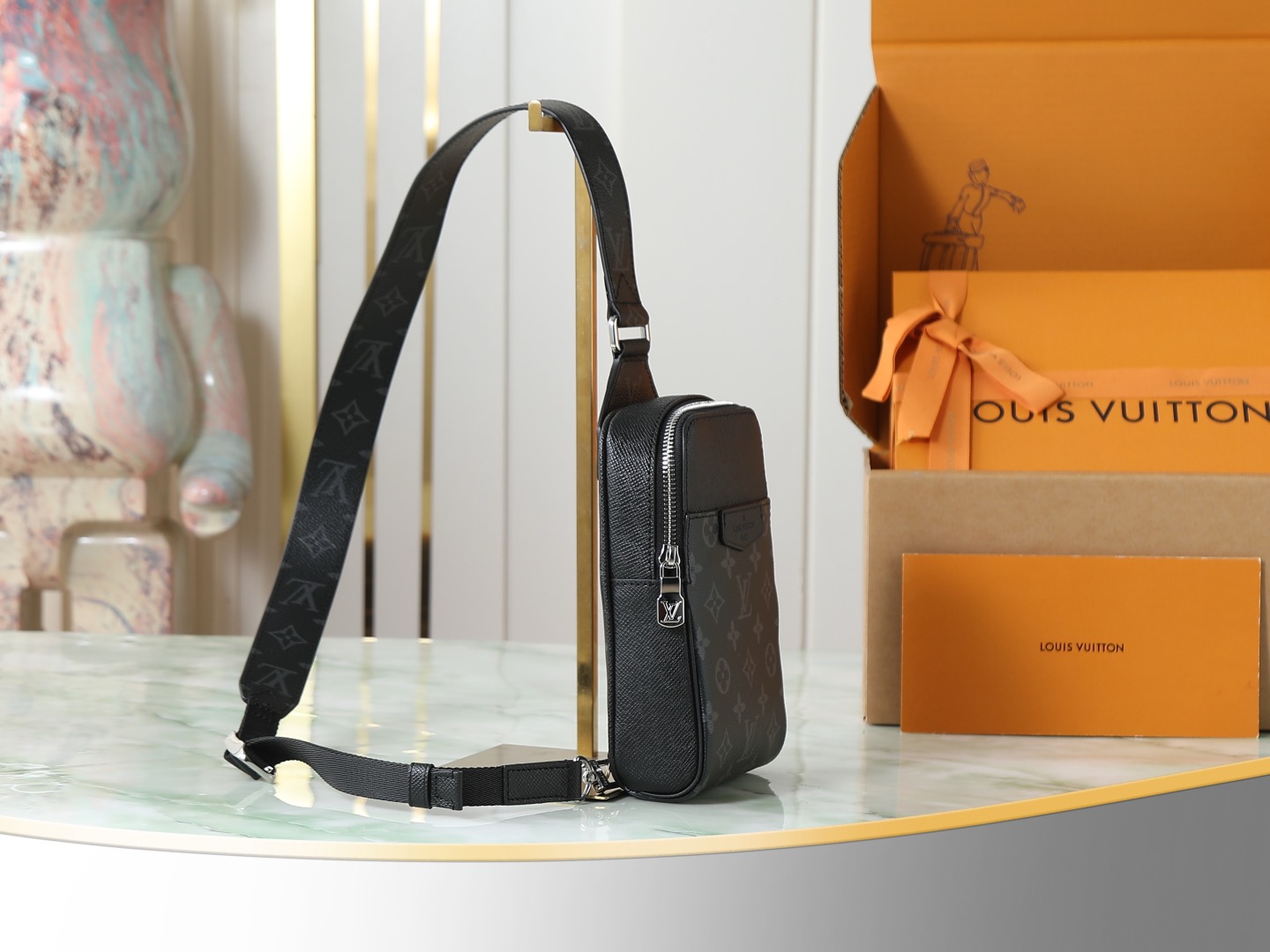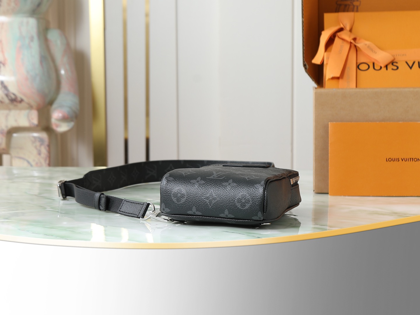 Kích thước gọn gàng, đủ để đựng các vật dụng cần thiết khi ra ngoài; ngăn trước có thể để điện thoại hoặc chìa khóa. Họa tiết Monogram Eclipse đen cùng vân chéo đặc trưng mang lại vẻ nam tính sang trọng. Dây đeo vai có thể điều chỉnh linh hoạt, đeo được cả hai bên.