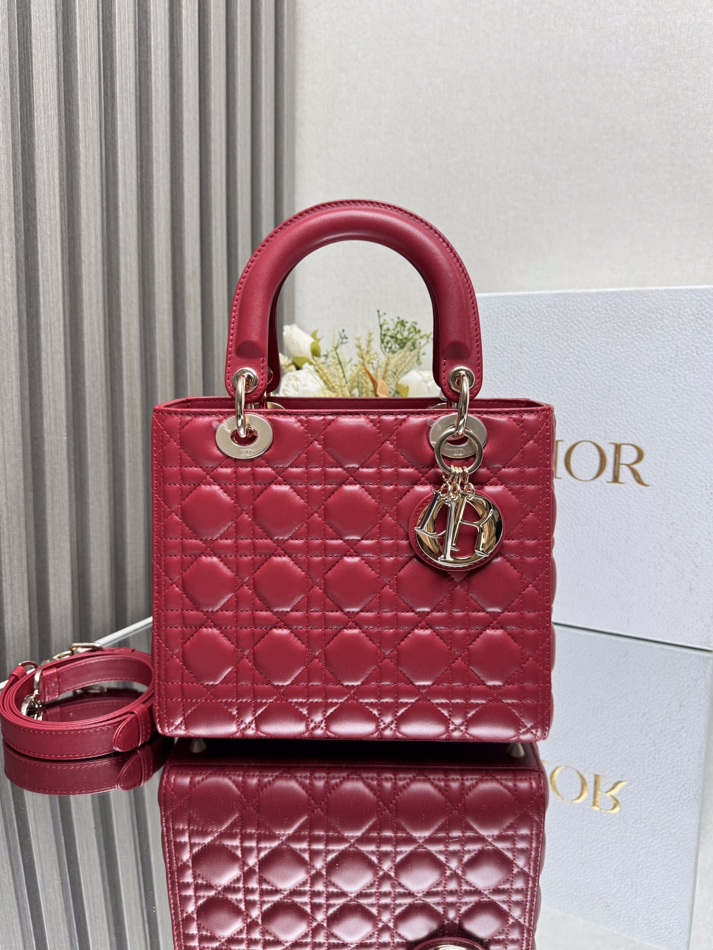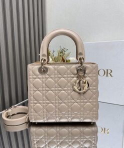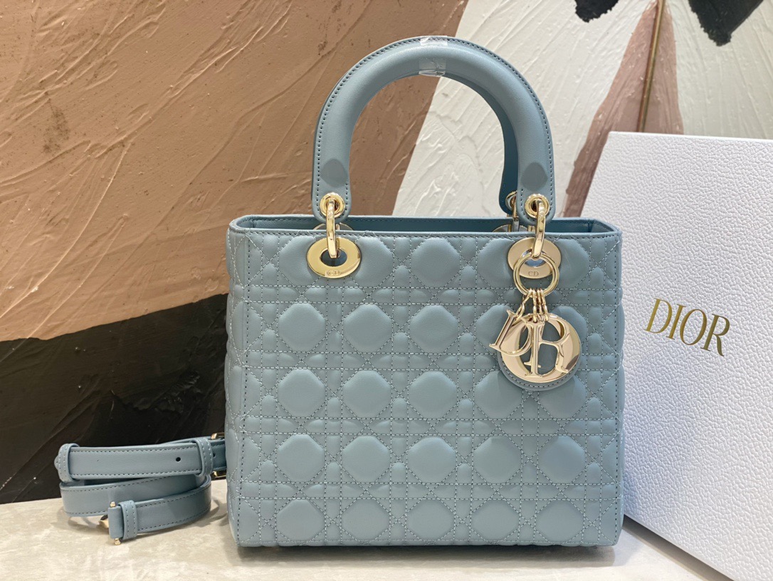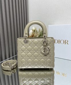Chiếc túi xách này thể hiện rõ nét sự tinh tế và vẻ đẹp thanh lịch mà Dior luôn hướng tới. Được chế tác tỉ mỉ từ da cừu non, với các đường may chần bông tạo hoa văn Cannage mang tính biểu tượng, thiết kế sang trọng và cổ điển, bền vững theo thời gian. Điểm xuyết men màu đồng điệu, bên trong lót da lộn cừu, đi kèm dây đeo vai dạng xích, có ngăn kéo bên trong. Có thể xách tay, đeo vai hoặc đeo chéo.