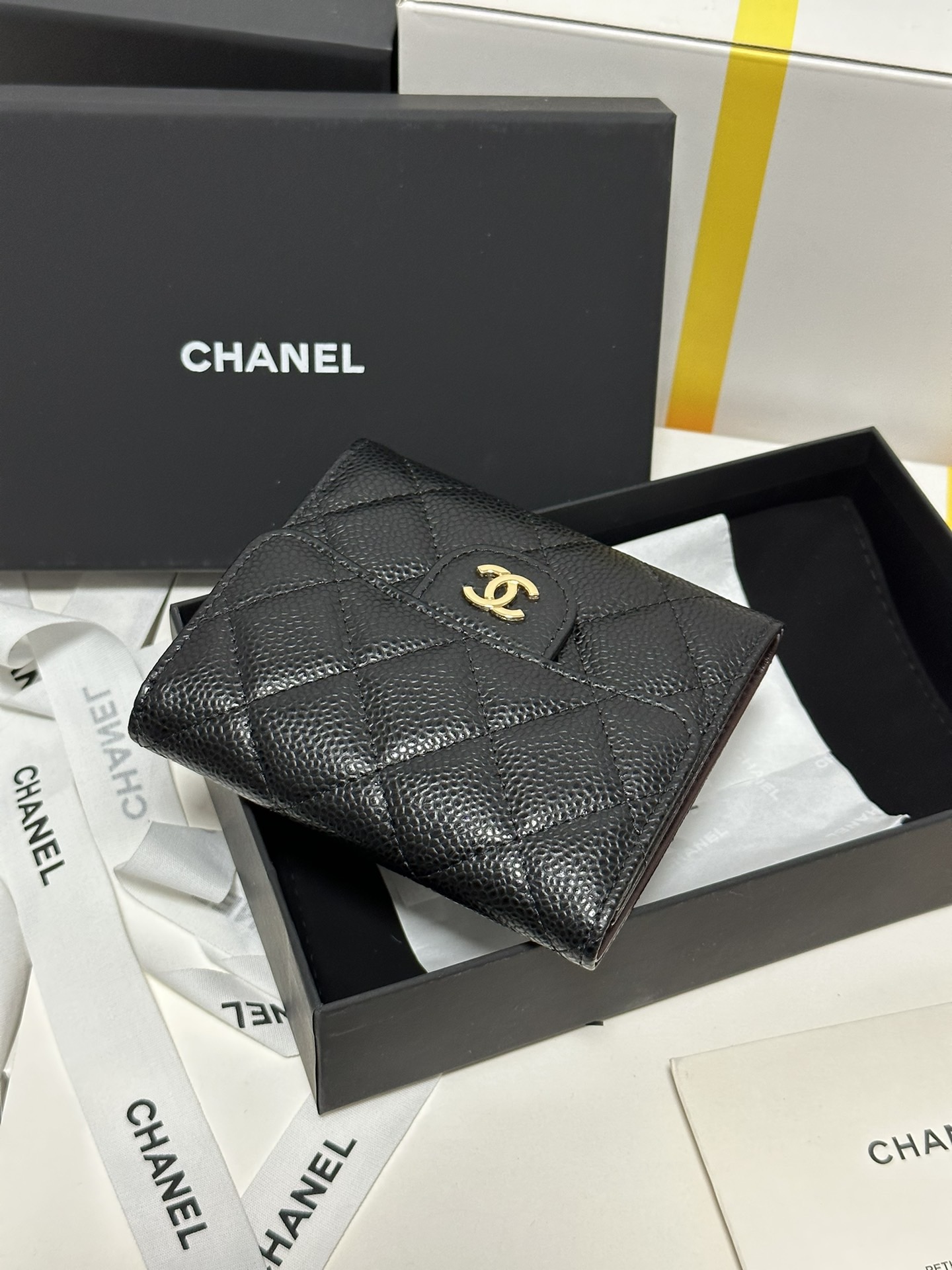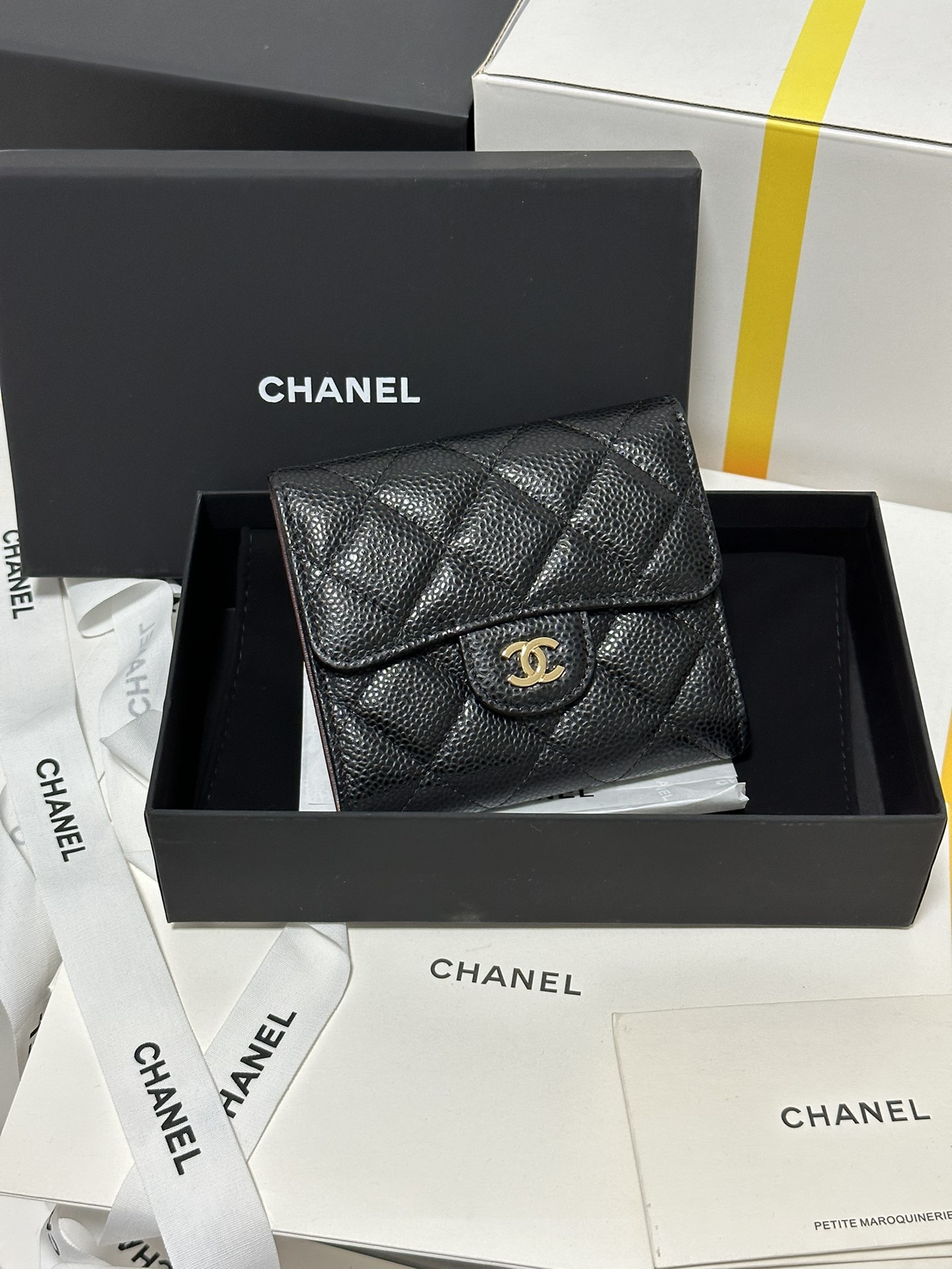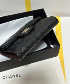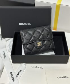 【Da nhập khẩu chính hãng】Phiên bản nâng cấp hoàn toàn mới ✧ Chanel Classic Small Flap Wallet – ví gập nhỏ cổ điển đã về hàng‼️Chất liệu: Da bò vân cá trứng (Caviar) – màu đen, khóa vàng sang trọng.